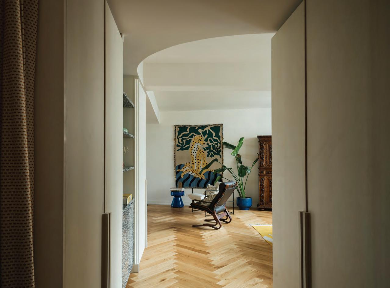 The majority of the furnishings seen in the final photos were already living in the space. With newly reimagined bones that introduce brightness and airiness, the room now offers a welcoming backdrop for the owner’s decor.