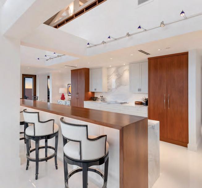 Ack nowledging the homeowner’s love for entertaining, Abner created the wet bar to be a space that feels both purposeful and