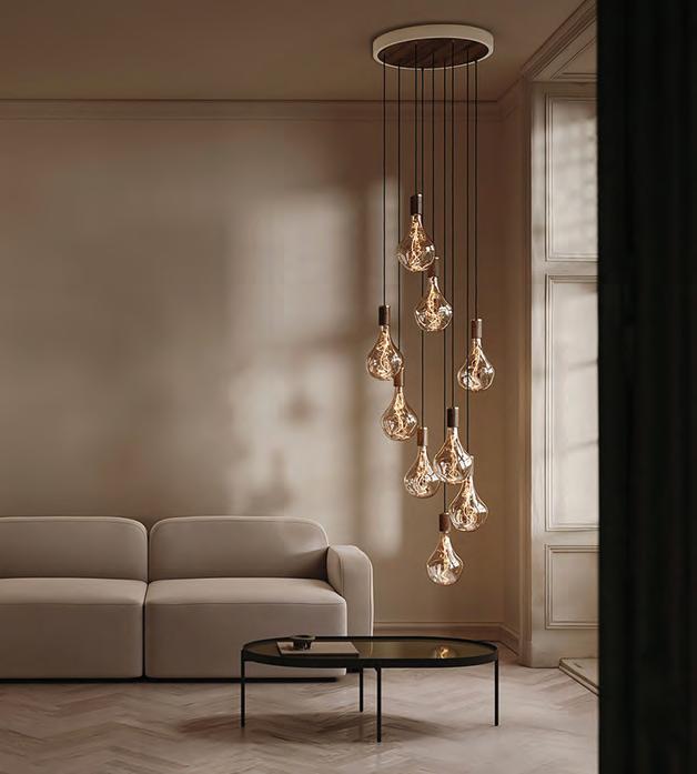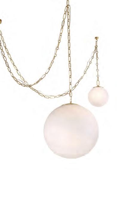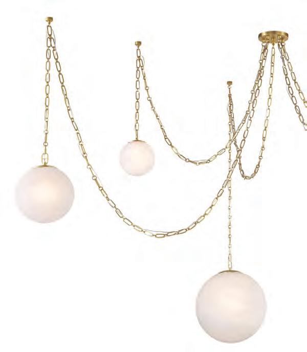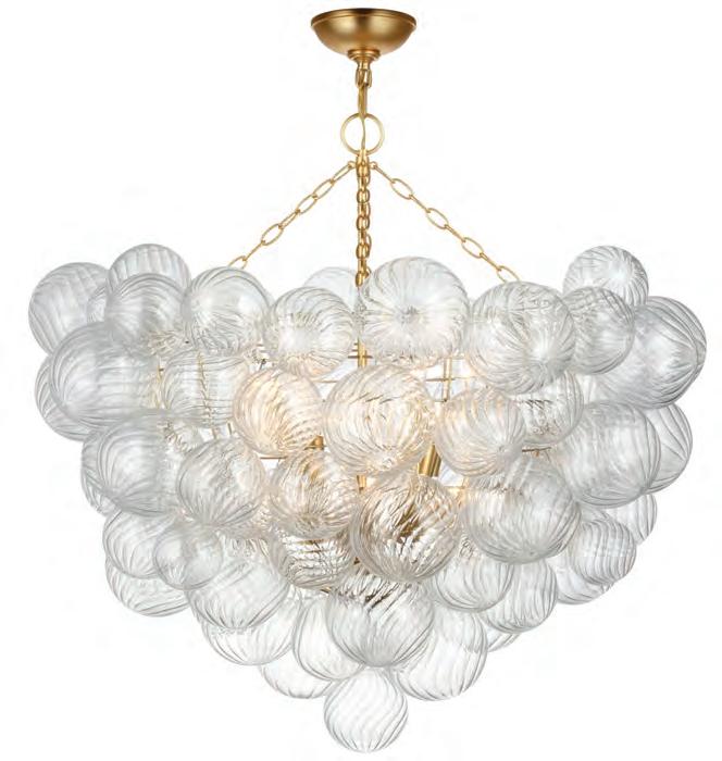 Cluster chandeliers consisting of spherical forms can be low hanging or higher mounted in grand bathrooms and above dining room tables. Talia large chandelier, available at Visual Comfort.