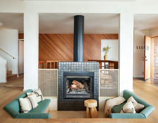 Designed for slow coastal living, this sunken conversation pit centers the home around warmth and gathering. The fireplace acts as both anchor and invitation, drawing people in and grounding the space. By lowering the seating plane and wrapping the hearth, the fireplace shifts from a backdrop to a shared experience, prioritizing connection over spectacle. It’s a quiet example of how thoughtful architecture can shape the way people come together. Photography by George Barberis.