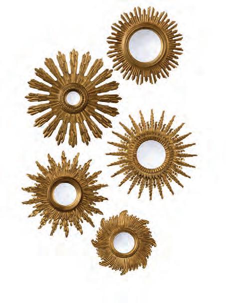 Chelsea House set of five gold starburst mirrors, available at Design & Detail.