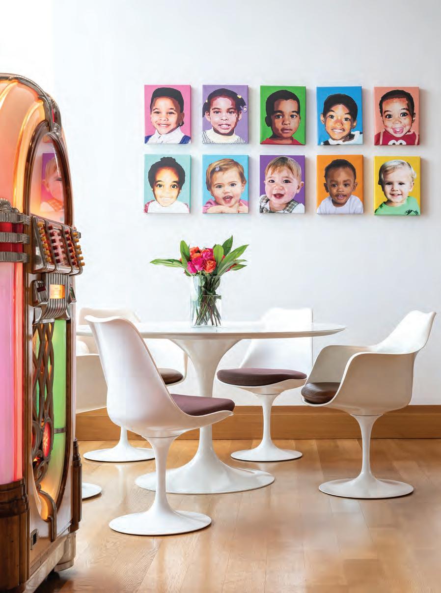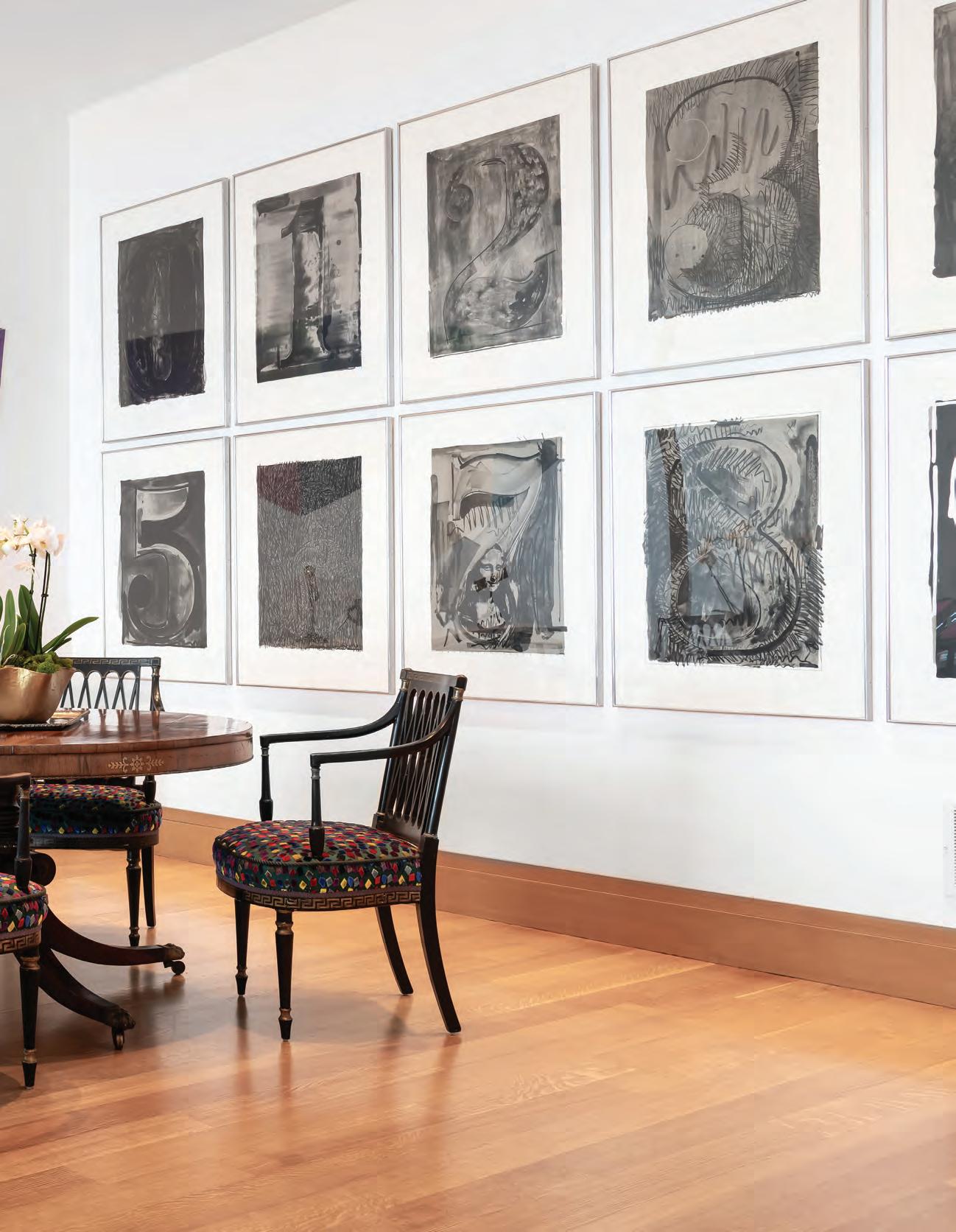 On the cover page 18-19 Spotlighting Jasper Johns’s “Numbers” collection, the dining room houses family heirlooms, including an antique dining table and chairs that make an elegant statement against the modern artwork. 8 Publisher’s letter