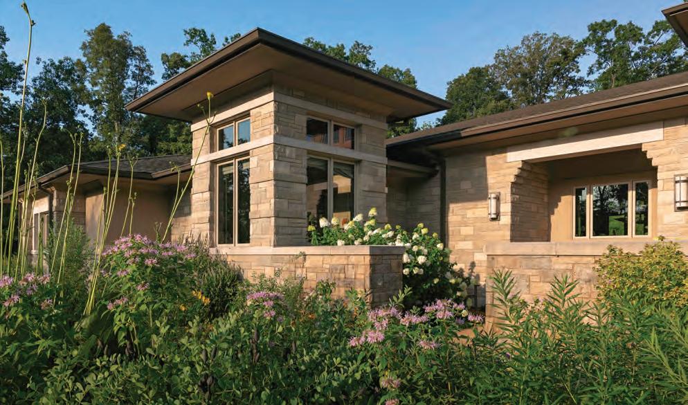 In one of Kirkwood’s designated historic districts stands a new home with an old lineage. Constructed of stone, the home embodies the spirit of a much older structure, honoring both its surroundings and the heritage of its owners. The site where the Herring Design and Development home stands was once occupied by a century-old Craftsman-style home. “The Landmark Commission really wanted us to save that home, but it was not salvageable by any stretch,” the homeowner explains. “We committed to the city that we would build a home that would do justice to the concept of a landmark district. That was very important to us. We didn’t just want to be here, we wanted to belong here, in the community.” Working with builder Monte Herring, Chicago-based architect Michael Abraham and