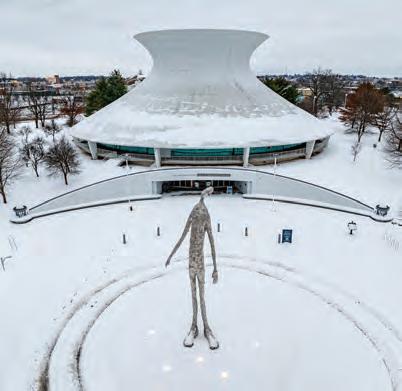 In front of the St. Louis Science Center stands a steel sculpture of a man gazing up at the sky. Made by a St. Louis native artist, this sculpture is an ode to the curiosities of space and the beyond. Photography courtesy of Forest Park Forever.