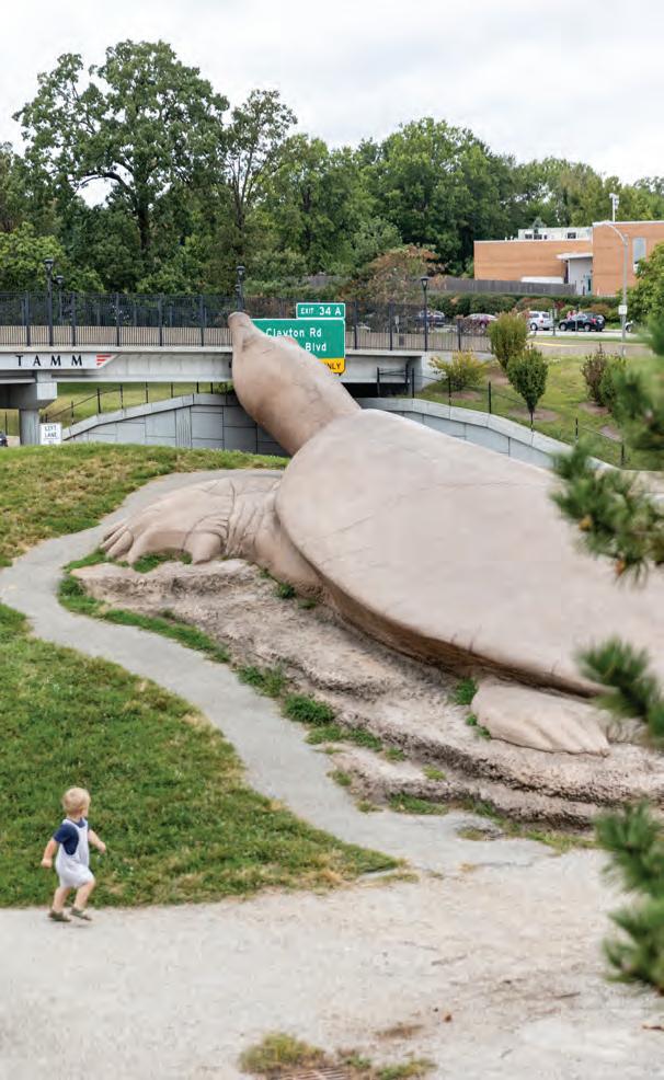 This iconic sculpture park can be seen from highway 64 as you drive east towards the city, and is across the street from the zoo and Forest Park. Featuring several different turtles and a couple of snakes, this park makes a great place to view art, and play on it, too.