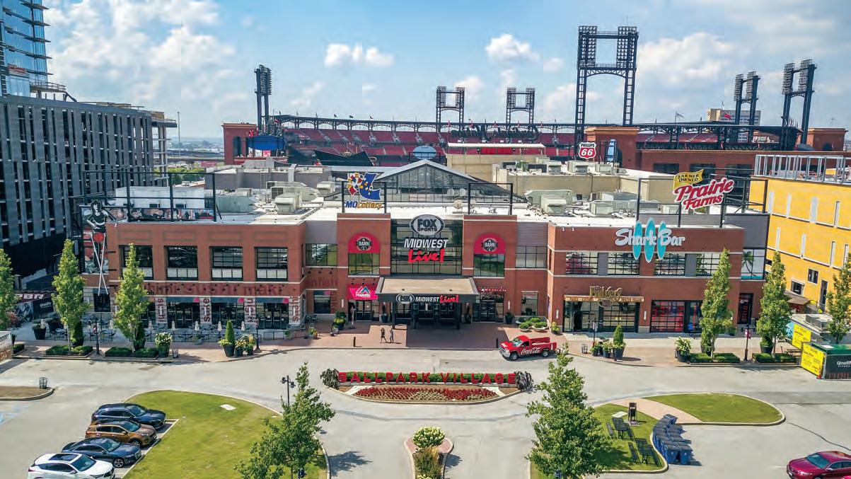 sports teams and fans have a home in this sports-anchored, mixed-use district. There is a lot to explore and experience, but it is centered around several one-of-a-kind attractions. If you’d like to indulge in our distinguished baseball history, you can visit the Cardinals Nation Museum and Hall of Fame; it’s worthwhile considering few franchises can rival the acclaim and heritage of the St. Louis Cardinals. Then, you can see how baseball past, present and future have been united by visiting Busch II Infield. Here, fans can walk on the old ballpark’s diamond: the same ground where legends have played ball. Once you’re finished surveying history, you can visit the Budweiser Brew House, a three-level venue dedicated to food, beer and friends. Whether you’re looking for indoor or outdoor dining, nightlife or a magnificent rooftop view of Busch Stadium, the Brew House has it all. If it’s game day for the Cardinals or Blues, however, then you must visit Bally Sports Live!, the core of Ballpark Village. Featuring a 1,200-square-foot HDTV, this two-level plaza offers the best watch parties in the country. Throughout Ballpark Village, there are additional bar, dining and entertainment options with even more to come. Still being developed is a Class-A office building; a luxury residential tower, One Cardinal Way; a Live! by Loews hotel and further retail, restaurant and entertainment space. Without a doubt, Ballpark Village is the city’s most significant development in a decade because it’s well on its way to becoming one