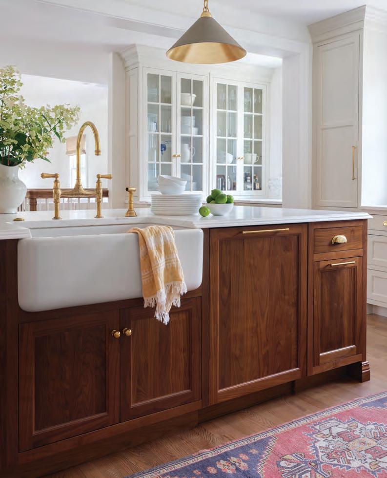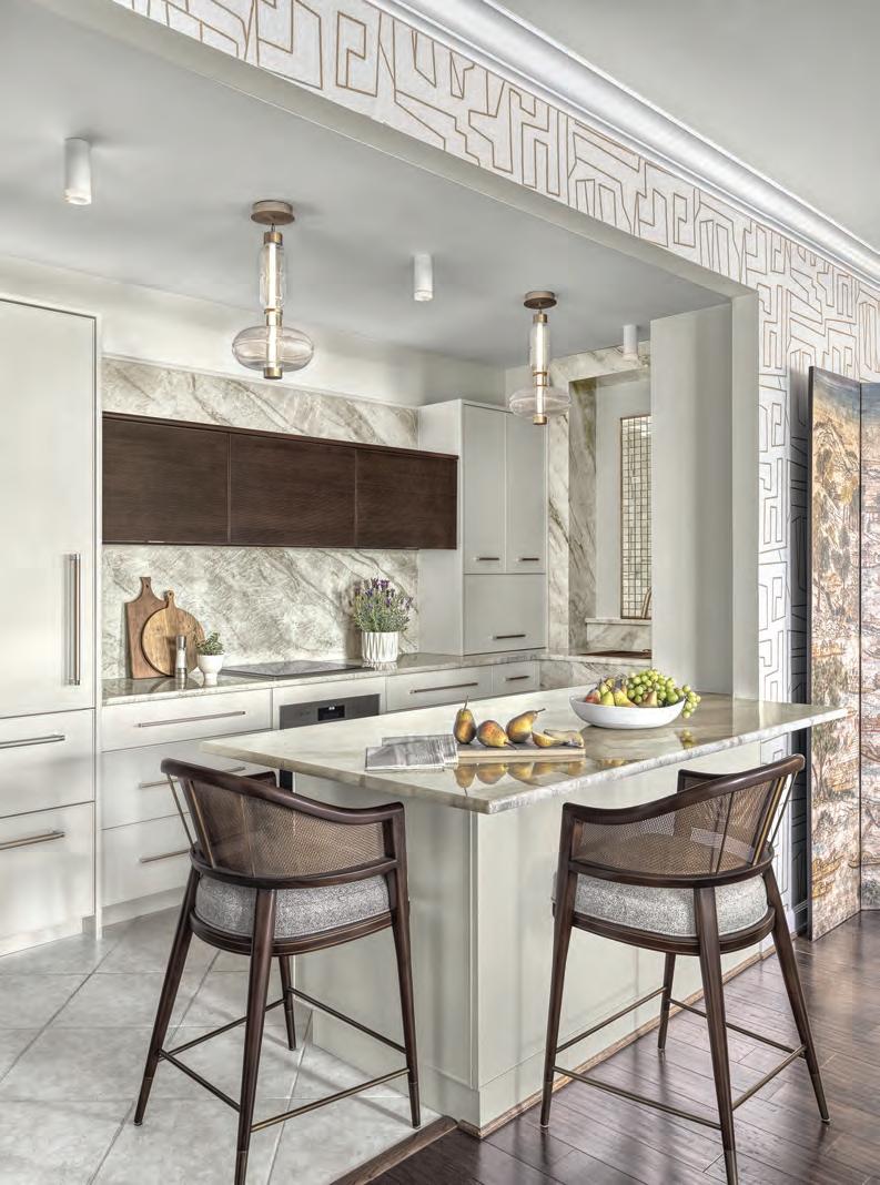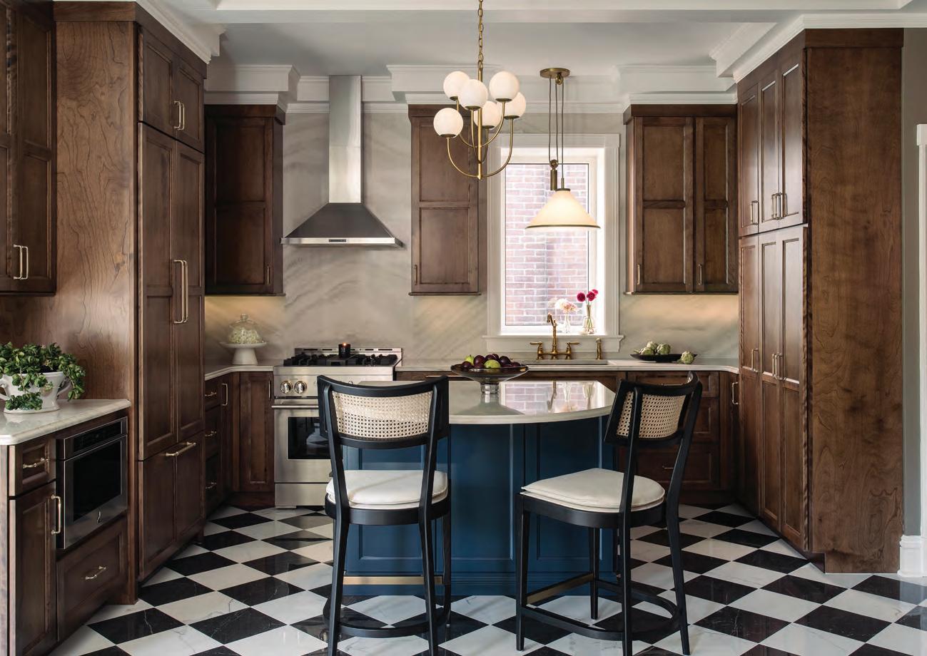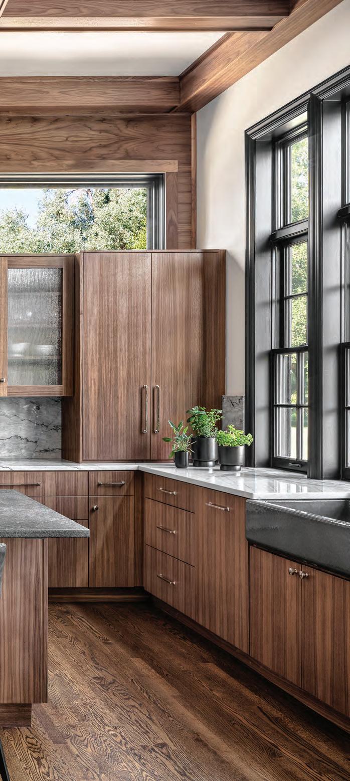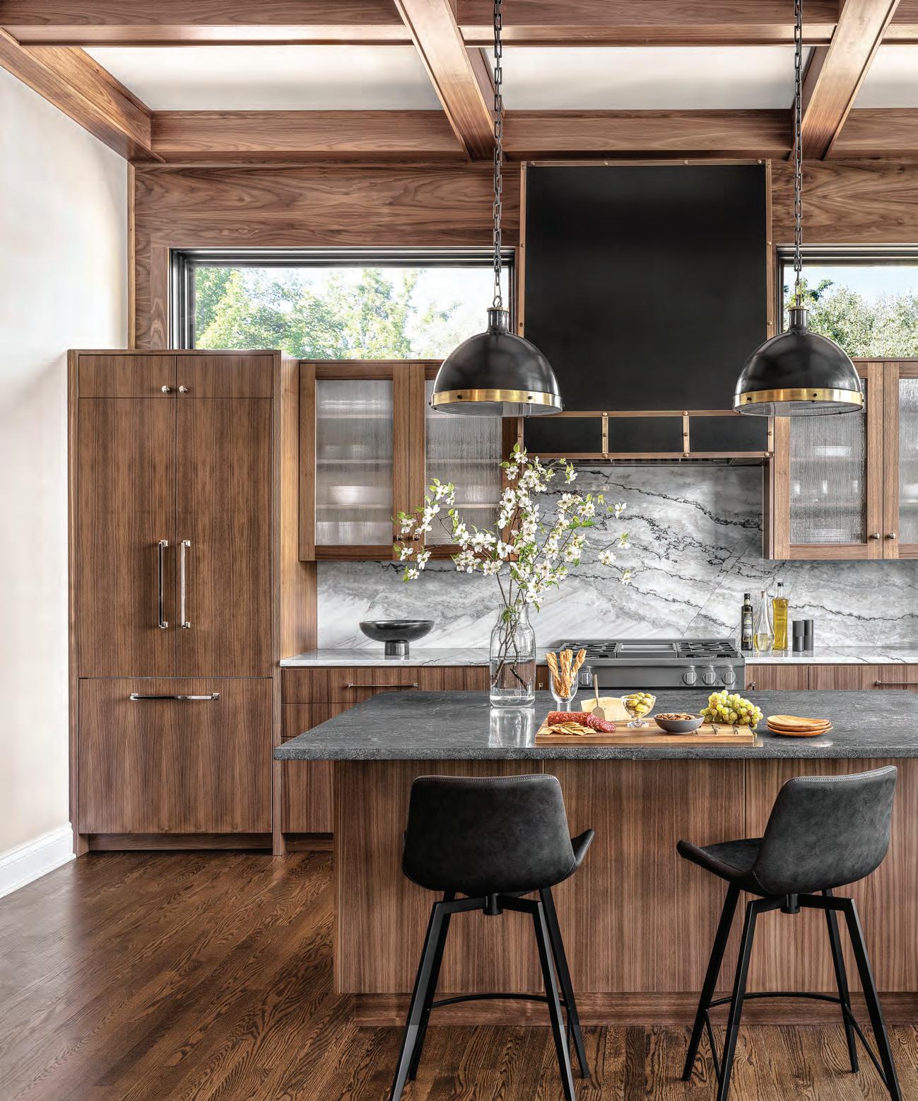 On the cover page 44-45. Richly-toned and locally-made American walnut cabinetry, a mix of handsome natural stone countertops, and mixed metal finishes punctuate and tailor the space.