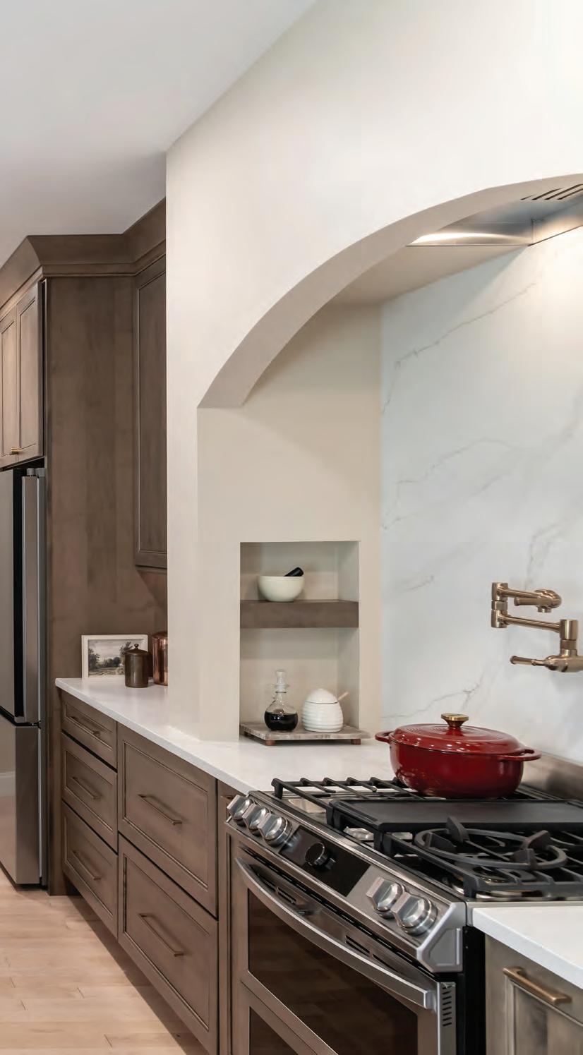 previous client I had worked with,” says Candice Wideman of Youtopia Designs. “They wanted their home to feel more personal, a true reflection of who they are and giving each space its own story to tell.” The project tackled three major spaces, the hearth room, the office and the kitchen. Since refinement was the primary goal, the process focused on enhancing the existing spaces rather than undertaking a constructionheavy remodel. “The homeowners’ taste was a little different from what I’m typically hired