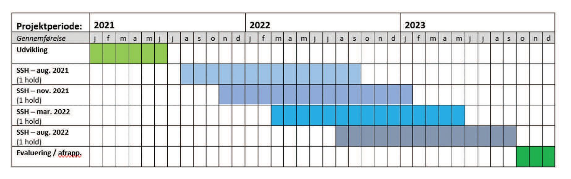 I foråret 2021 startes udviklingsarbejdet, og de udviklede aktiviteter vil blive afprøvet på i alt 4 SOSU-hjælperhold: