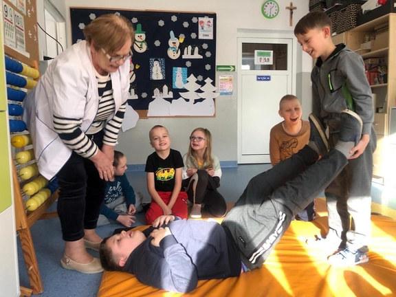 Młodsi uczniowie uczestniczyli w zajęciach z pierwszej pomocy, które poprowadziła pielęgniarka szkolna - pani Krystyna. Dowiedzieliśmy się jak postępować w razie skaleczenia, zadławienia czy omdlenia.