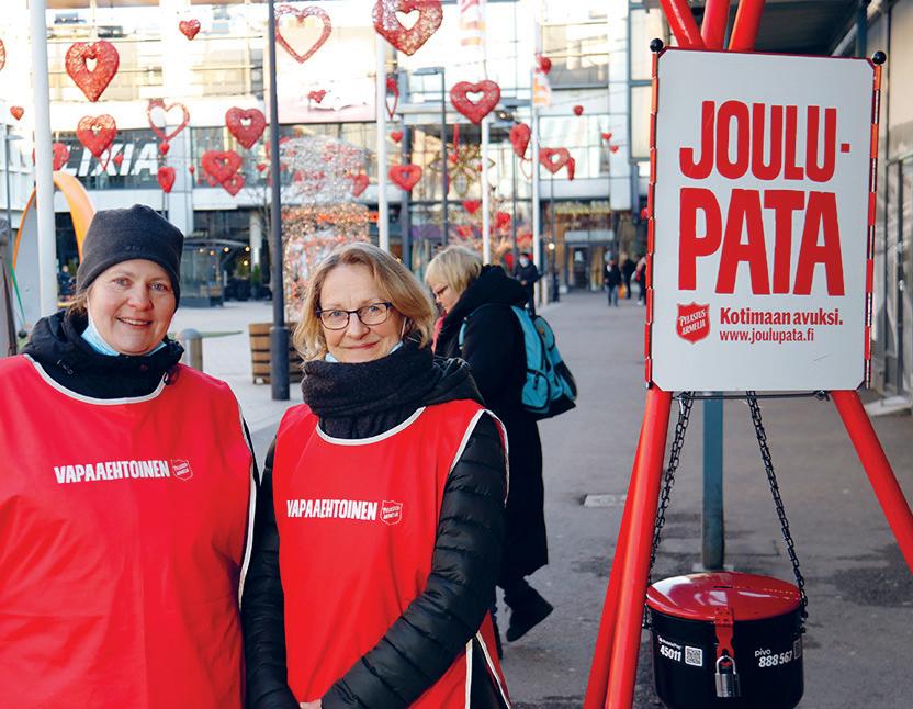 Kolmatta vuotta jatkuvan pandemian ja Ukrainan sodan seurauksena avun tarvitsijoiden määrä on lisääntynyt kaikkialla Suomessa. Joulun lähestyessä avustuspyynnöt moninkertaistuvat. – Jouluna ruoan tarve on arkea suurem pi, mutta toki myös jokainen lapsi haluaisi jouluna saada lahjan, ja jokainen vanhempi haluaisi lahjan ostaa. Autamme, miten vain voimme. Valtavia lah joituksemme eivät ole, mutta ne ovat rakkaudella annettu, kertoo Pelastusar meijan Helsingin sosiaalipalvelukeskus Sopan johtaja Kirsi Huldén