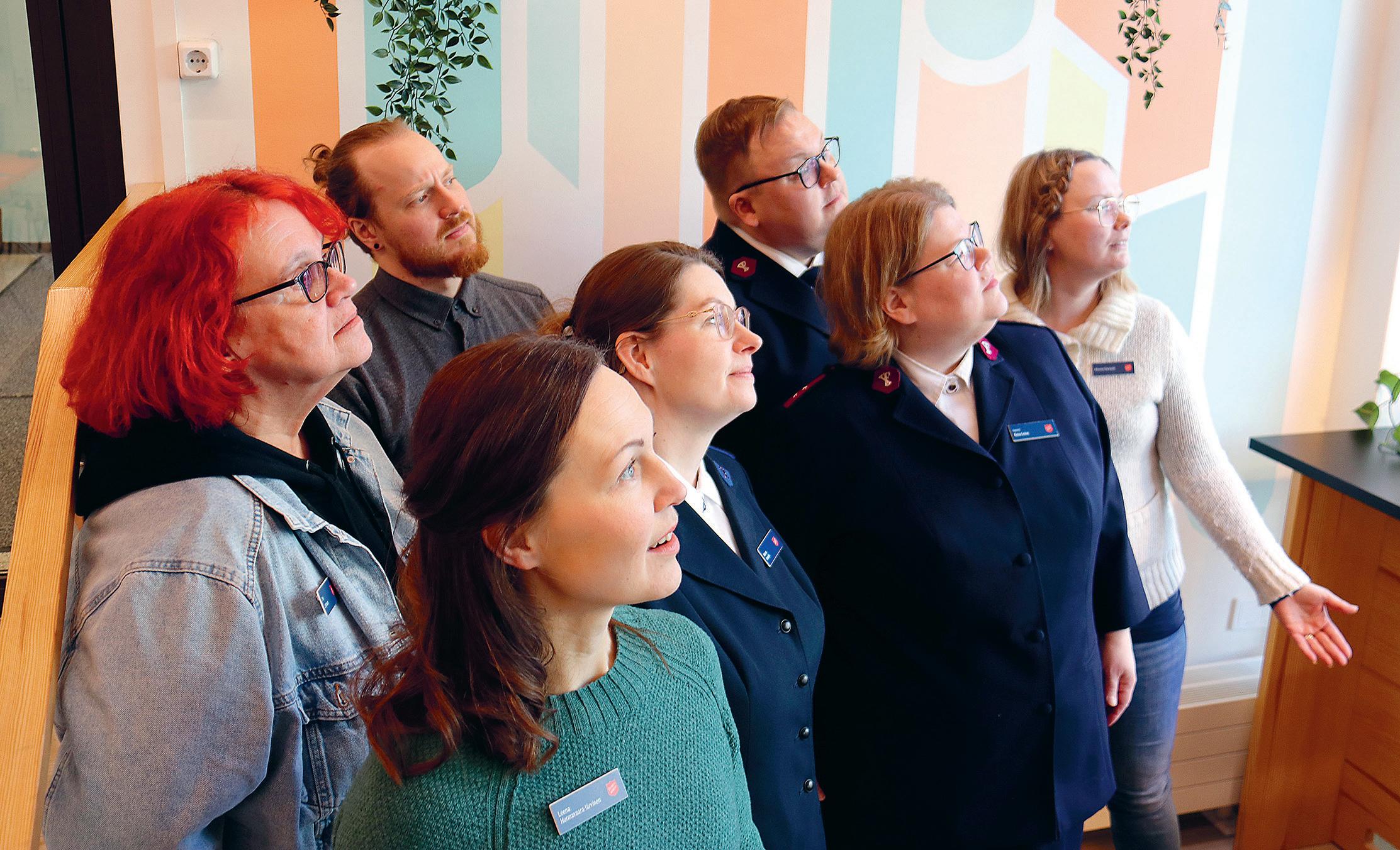 Vaasan osastolla on vielä viideltä hiljaista. Tuntia myöhemmin ei niinkään. Tapaan osastonjohtajat, luutnantit Ari ja Eija Kulmalan, ja juttelemme sohvalla sillä välin, kun pelastussotilas Säde Perttula ja luutnantti Enni Becker ovat valmistelemassa nuorten illan tarjoiluja. Tarjolla on panineja, leipärullia ja kaikenlaista pikkuherkkua. Nam! Ari ja Eija ovat palvelleet Vaasassa jo seitsemän vuotta: avustajina, kokelaina, kadetteina ja vuodesta 2020 alkaen upseereina. Suurimman osan tästä ajasta he ovat olleet osastosta ja sen työstä vastuussa.