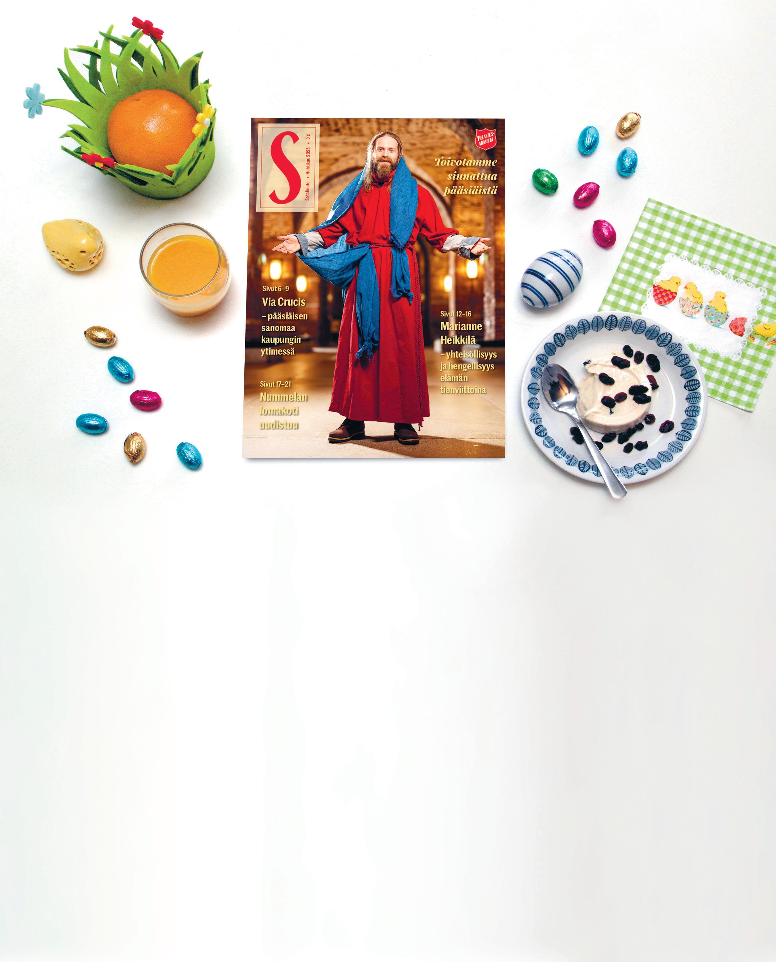 Synkän ja pimeän talven jälkeen huhtikuu tuo jo mukanaan lupauksen keväästä ja kesästä. Aurinko lämmittää, maa sulaa roudasta ja uuden elämän merkit tulevat näkyviin. Pääsiäinen sijoittuu juuri tähän ajankohtaan, ja myös sen sanoma uudesta elämästä tuo valoa ja toivoa pimeyden keskelle. Huhtikuun numeromme muistuttaakin meitä hengellisistä arvoista sekä yhteisöllisyydestä.