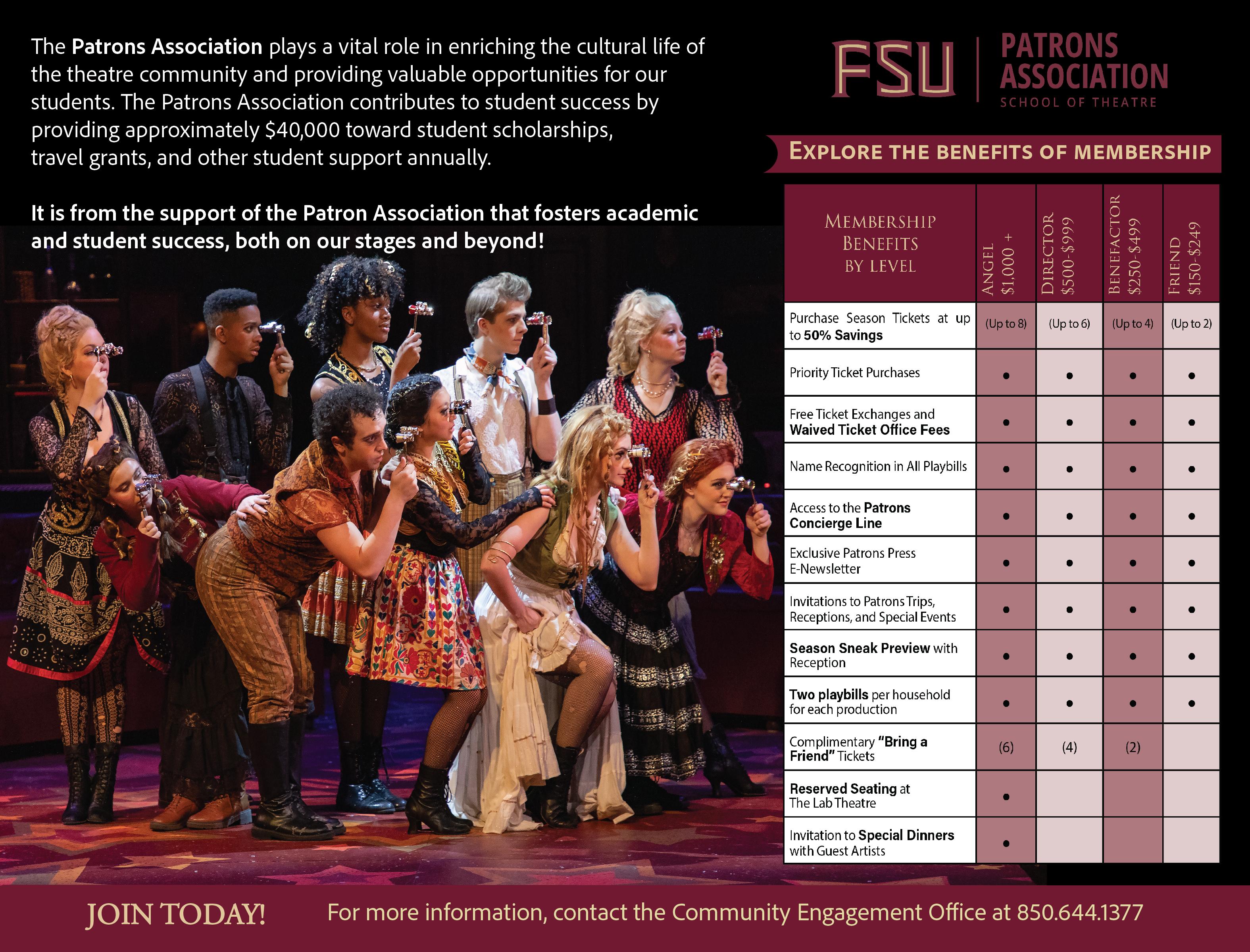 Printed playbills are a reward of joining the Patrons Association. For more information, visit theatre.fsu.edu/patrons-association/