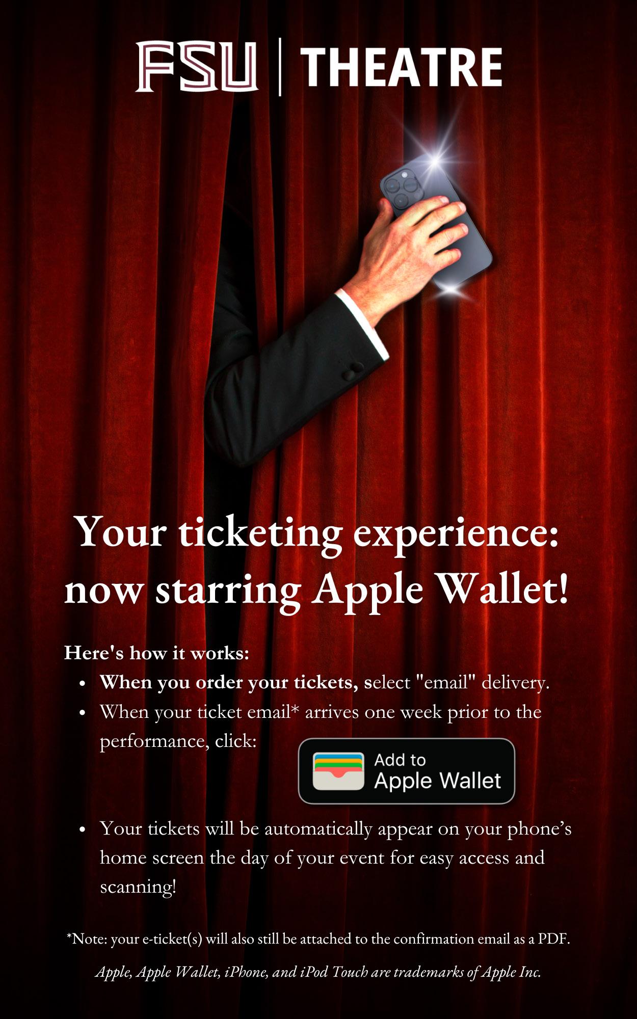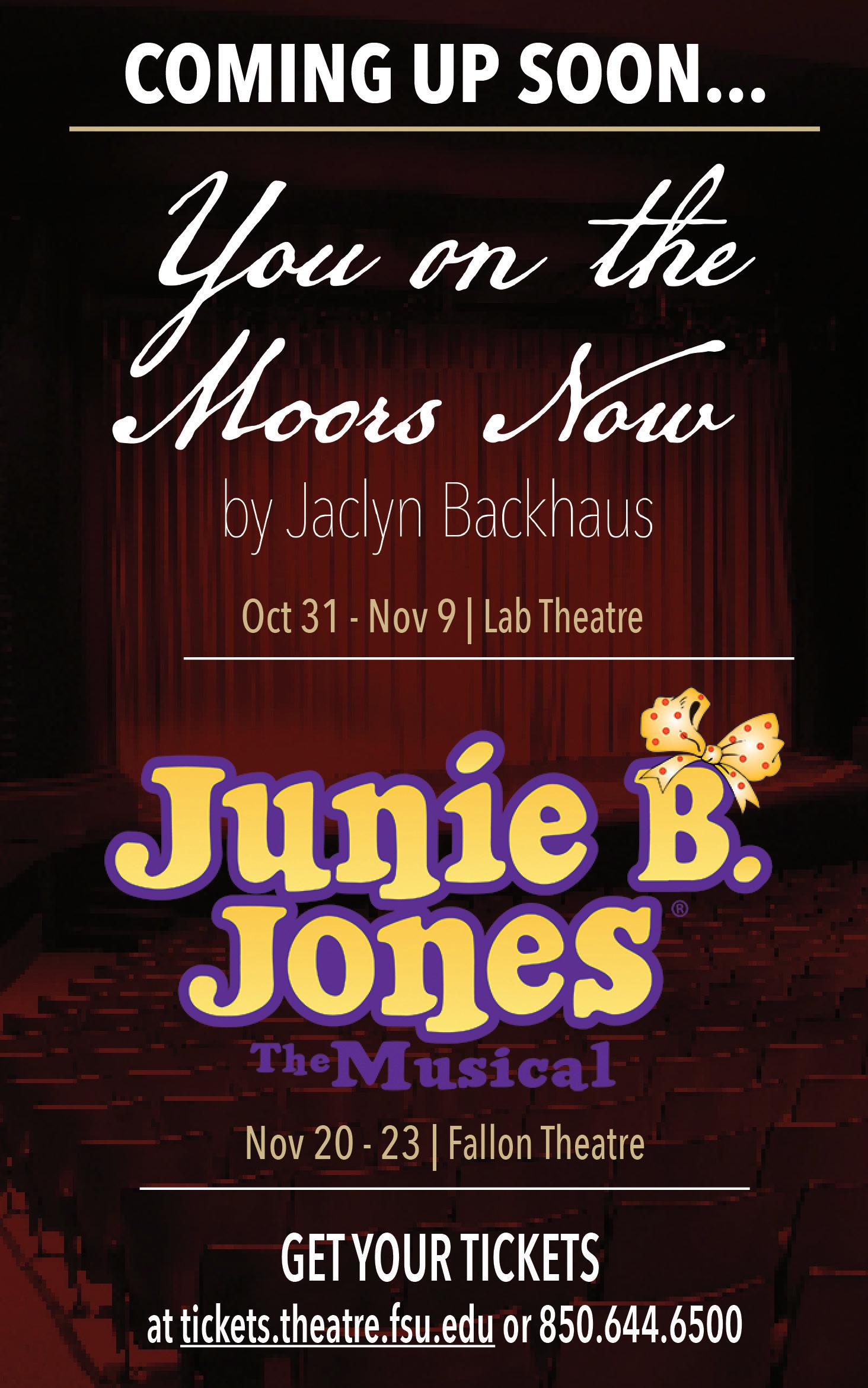 We hope that you will join us for each and every production as we celebrate the incredibly talented students, faculty, and staff who have worked tirelessly to create what you see on stage. Thank you for supporting the arts and the School of Theatre at Florida State as we could not do it without you!