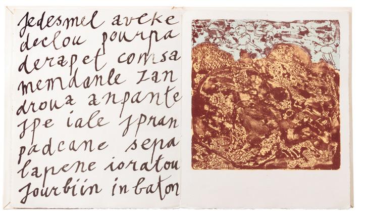 Anvouaiaje par in ninbesil avec de zimaje Paris, 1950. Un des 23 exemplaires. 9 lithographies. Exemplaire avec suite. Envoi de Dubuffet à Alfonso Ossorio. Estimation : 10 000-15 000 €