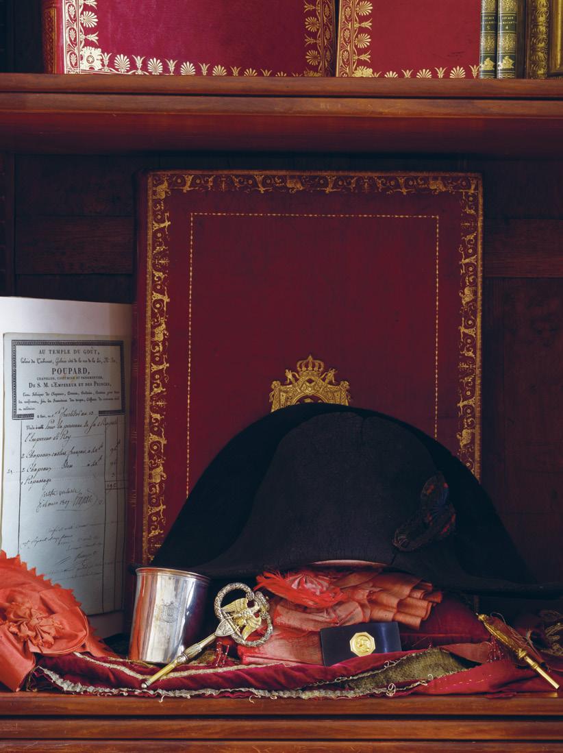 Bicorne de l’empereur, modèle réalisé par Poupard, offert par Napoléon au général Mouton après la bataille d’Essling en mai 1809, timbale en argent du service de l’Empereur subtilisée lors du sac de la berline impériale au soir de la bataille de Waterloo le 18 juin 1815