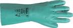 Utilisable pour les traitements phytosanitaires. Gants nitriles étanches. Finition extérieure adhérisée. Sans silicone. Manchette à bords droits. Longueur 33cm.