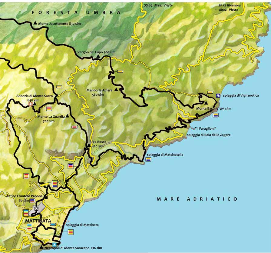 Tutto questo, partendo dal centro della piccola, ma accogliente città di Mattinata, e in pochi attimi si arriva a “toccare” le mille sfumature di questa perla della nostra splendida penisola che è il Gargano. Basta recarsi all’interno dell’ufficio della I.A.T. (Informazione e Accoglienza Turistica) dove potrete, oltre a richiedere le informazioni turistiche generiche, ritirare una cartografia dedicata al Gargano Running & Trekking Park con lo sviluppo dei sette sentieri e tutte le linee guida per affrontare, nella massima sicurezza, le vostre corse o le vostre passeggiate sullo “Sperone d’Italia”.