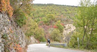 queste zone. Fino a Castelsantangelo si pedala sempre con grande piacere, spesso il naso è rivolto verso l’alto, per ammirare la fitta vegetazione che ricopre la valle. La salita è esposta verso Frontignano è esposta a sud, anche nei mesi