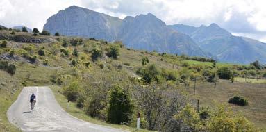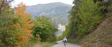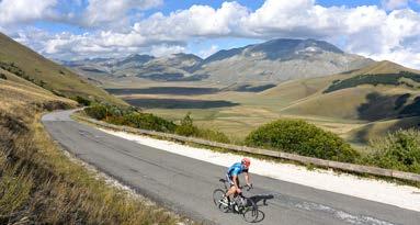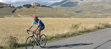 alla Piazza centrale di Ussita al 17° Km la bicicletta sembra andare da sola, un lunghissimo falsopiano in leggera di scesa fino a Pontechiùsita. Da qui si precede verso Preci e si entra nella bellissi-