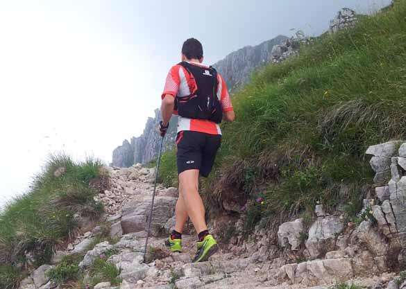 i tratti attrezzati, se affrontati con calma, non sono così impegnativi e poter posare le mani su rocce così importanti è stata una sensazione unica. Da Pian dei Resinelli (alt 1278 m) si sale al rifugio S.e.M. Soldanella cavalletti (alt. 1356 m) da dove inizia il sentiero. Salendo verso il Rifugio Porta (alt 1426 m) si riesce a correre bene anche se in salita ma appena imboccato il sentiero n.7 o cresta cermenati si è costretti a lasciare la corsa per una camminata veloce, dal momento che le pendenze diventano importanti: in meno di 2 chilometri, con un ultimo tratto attrezzato, si raggiunge la cima Grigna Meridionale o Grignetta (alt 2184 m). Poco dopo la vetta si incontra il bivacco Bruno ferrario (alt 2177 m), una struttura a forma di navicella in alluminio che può ospitare 6/8 persone. Proseguendo sul sentiero n. 7 (alta via delle Grigne o Traversata alta) si scende inizialmente su un tratto attrezzato, su cui prestare molta attenzione, per poi ritrovarsi finalmente a “lasciar andare” di nuovo le gambe correndo in discesa fino alla Bocchetta val di Mala e al Buco di Grigna (alt 1842 m). all’aridità delle cime intorno contrasta la ricchezza di flora delle valli circostanti. Si risale sul versante settentrionale del Grignone correndo lungo un primo tratto in cresta prima di imboccare il tratto attrezzato degli Scudi (alt 2028 m). Superato lo sperone