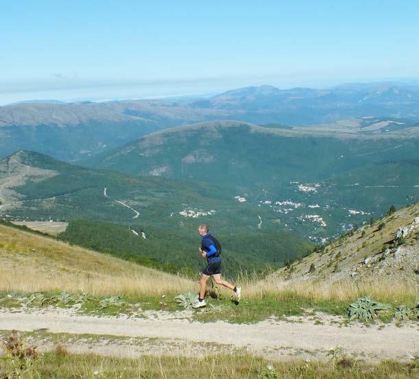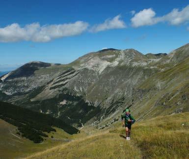 creste, come un fartlek sospeso tra terra e cielo fino ad affacciarsi sull’incantevole conca di Pian Grande, una lunga e costante discesa su single track e poi tra dolci colline erbose fino a Castelluccio. Un viaggio nel cuore dell’Italia.
