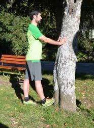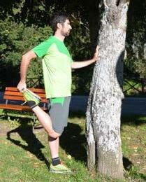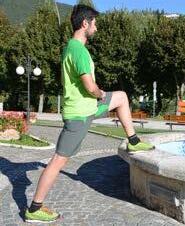 Appoggiare l’avampiede ad un ostacolo, aiutandosi con un piegamento ed una distensione della gamba posteriore. Il ginocchio anteriore rimane completamente esteso.