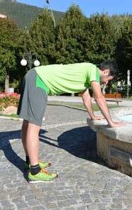 Appoggiare il piede anteriore su un ostacolo con la gamba posteriore in estensione. Il piede posteriore rimane con la punta rivolta all’ostacolo. Spostare il bacino verso terra senza inarcare la schiena.
