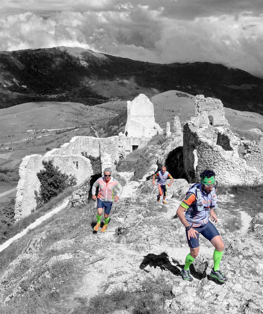 Mentre stiamo correndo, cogliamo la forza di una terra straripante di storia, dove i nostri passi calpestano migliaia di altre orme che prima di noi hanno vissuto e sudato ogni centimetro di questi terreni. Dalle vette alle pianure, dai lastricati dei resti della splendida Alba Fucens, agli acquitrini delle Gole di Celano, ascoltando silenziosi i ricordi di Aurelio e delle genti dell’Abruzzo.