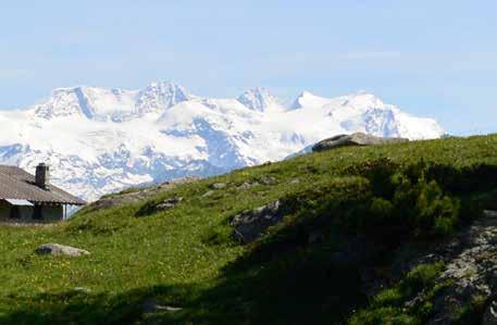 Quello che facciamo è un vero e proprio tour dei laghi, gli specchi d’acqua si susseguono senza soluzione di continuità: dal Lago della Selva al Lago Bianco fino al Gran Lac. In tutti, da diverse angolazioni, si riflette il massiccio del Monte Rosa e più in alto, anche il Cervino. Si vede che fino a poche settimane prima qui c’era ancora neve, siamo ben oltre i 2000 di quota: l’erba è appena spuntata, di un verde acceso e intenso, non ancora “bruciato” dal sole estivo. In alcuni punti resiste qualche accumulo di acqua e bisogna saltare per non bagnarsi i piedi. Forse siamo i primi, se escludiamo Dennis e Franco che qui si allenano quasi tutti i giorni, a salire su questi alpeggi quest’anno.