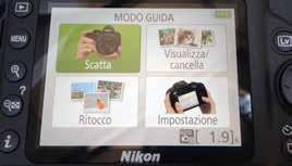 La ghiera di selezione, permette di scegliere il modo di scatto desiderato se abbiamo già qualche competenza fotografica, altrimenti, la voce “GUID e ”, illustra passo passo come ottenere un determinato scatto o come ela borare le foto già catturate.
