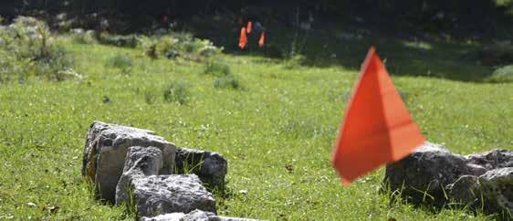 • Bandierine: hanno uno stelo in acciaio di 4050 cm e la bandierina rettangolare che può anche essere siglata. Sono molto utili per le segnalazioni nei prati e in tutte le situazioni in cui mancano appigli e sporgenze a cui legare le fettucce.