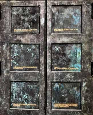 E gli alberi, tanti alberi, erbe e fiori, dentro e fuori dell’Eremo, rispettati, curati e all’occasione usati per curare. Ogni albero con le sue proprietà e il suo simbolismo, ben descritto in caratteri d’oro nei pannelli retrostanti il nuovo portone dell’Eremo, tutto in bronzo, opera di Claudio Parmiggiani per ricordare i mille anni dell’origine del sacro luogo.
