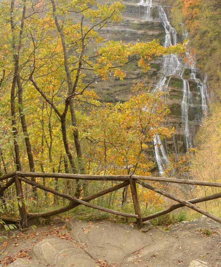 - La valle dell’Acquacheta in primavera, con il fragore della cascata e la verde e lussureggiante valle appenninica.