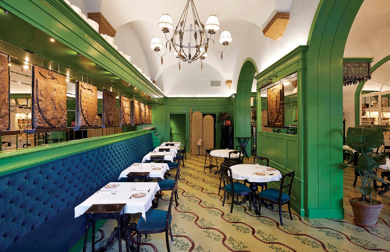 The new 8,000sq.ft. Chambers enjoys an expanded footprint. “Earlier everything was micro: smaller rooms, less number of rooms, no proper bar,” reveals Mukherji. “Plus, it was too heavy on wood. We balanced it out.” Painted walls, wallpaper, plaster of Paris, mirror panelling, luxurious fabrics—each surface was chosen to feel fresh. The flooring, once a plain expanse of wood, now reveals intricate patterns—a detail that draws the eye the moment you notice it.