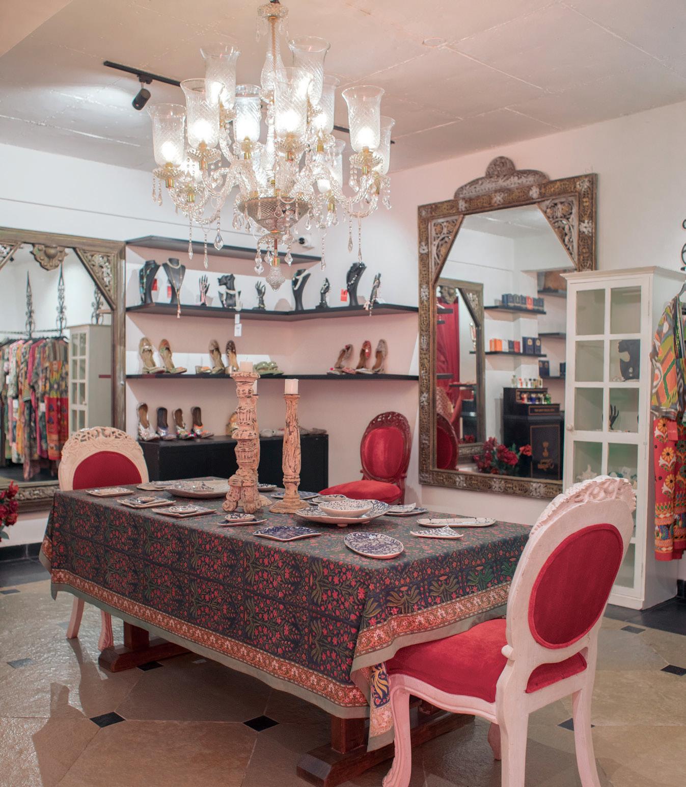 Tucked behind a fluted glass façade, the three-storey retreat invites guests into a light-filled passage, where the scent of fresh florals from nearby phool gully (the street of flowers)—where hundreds of vendors trade in blooms against a backdrop of striking street art—lingers in the air. It’s a signature touch from Guneet, who arrives each morning with armfuls of flowers and carefully arranges them into delicate bouquets.