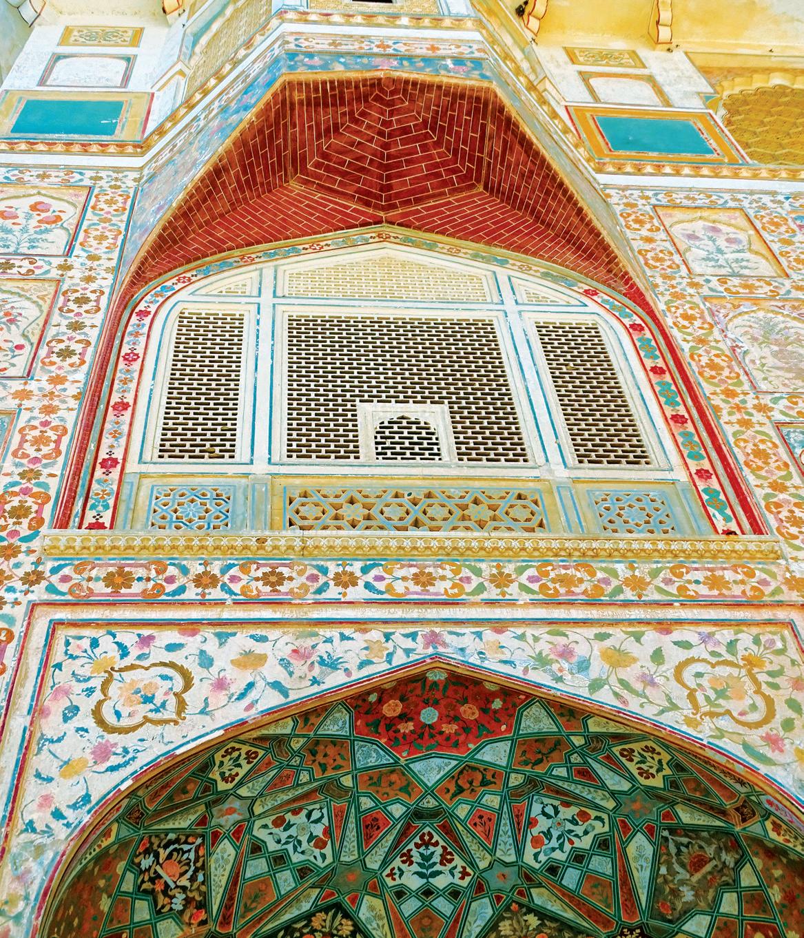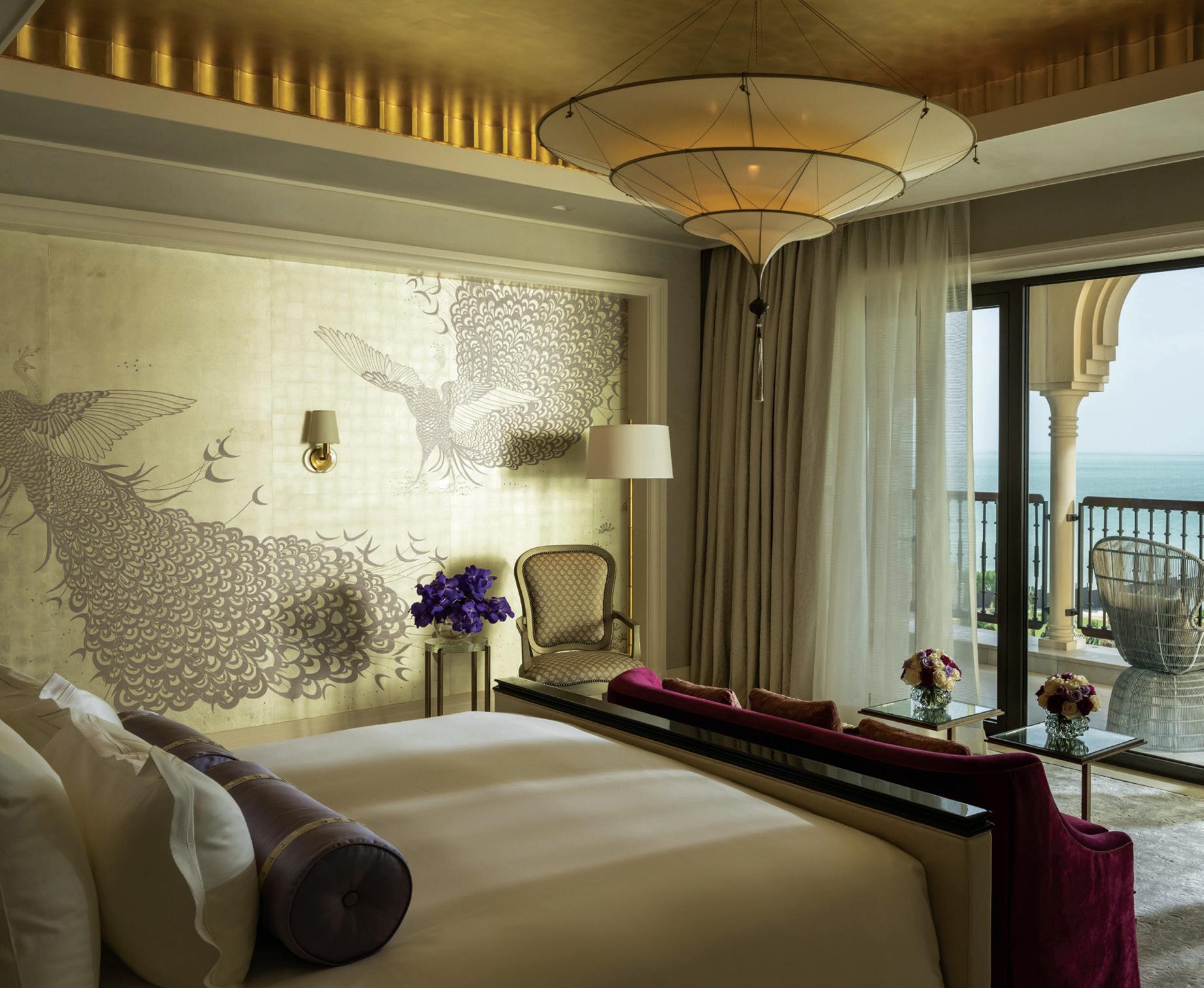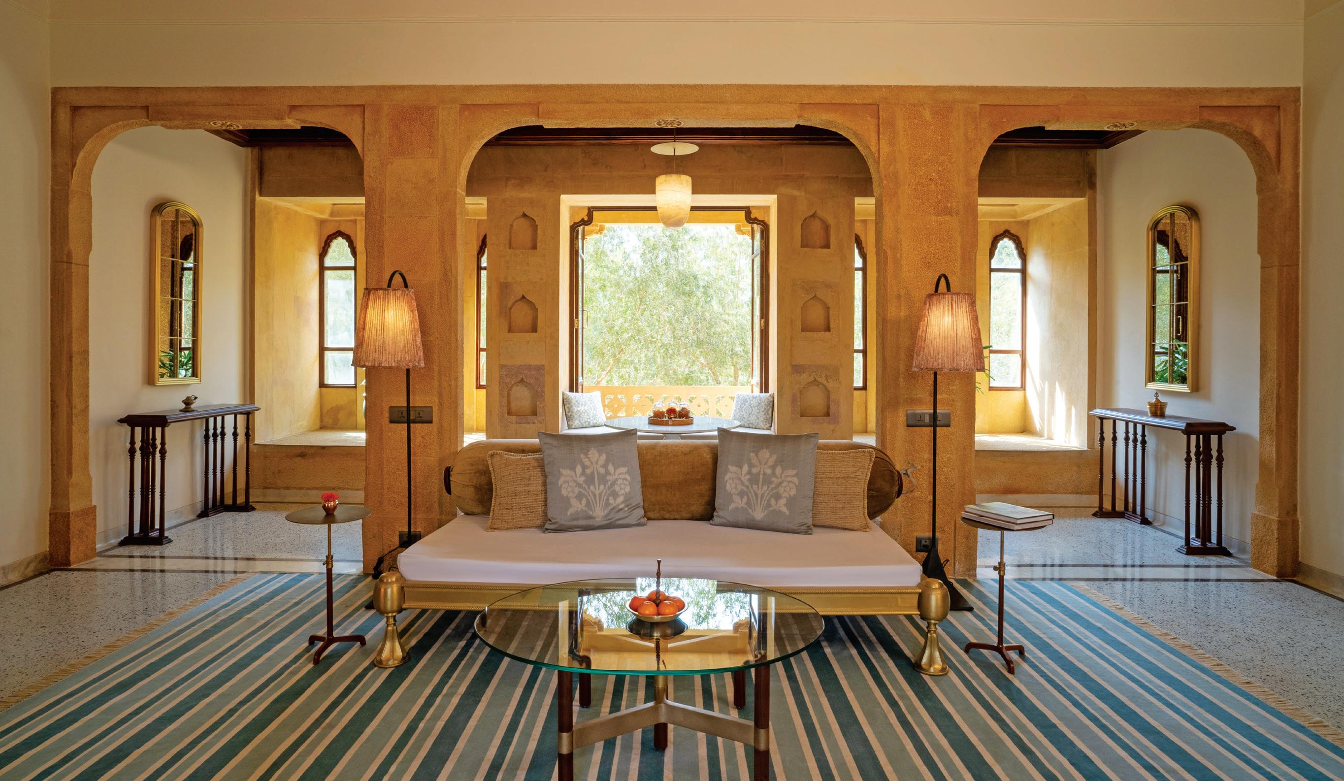 The bathrooms, an extension of the room aesthetics, defy the sleekness trend in modern design, prioritising comfort and cosiness. Marble jaalis for showers and redand-white marble floors ensure continuity. Oudejans and Miolini embraced diverse lighting, avoiding halogens or track lights. Instead, the property is adorned with things such as hanging lanterns, Venetian wall sconces, and delicate table lamps, creating a homely ambience.