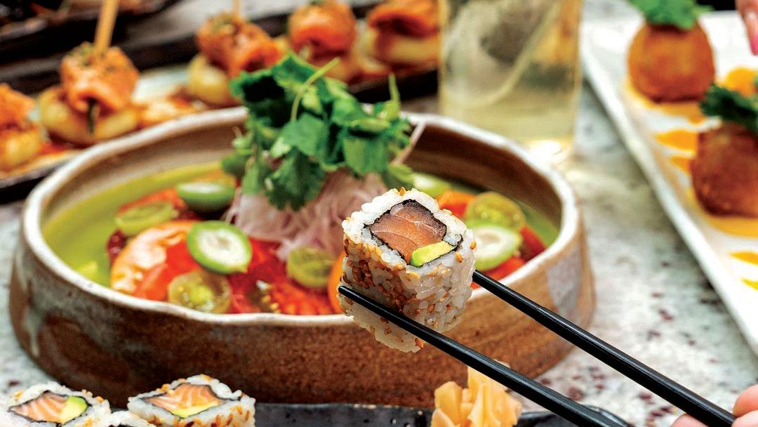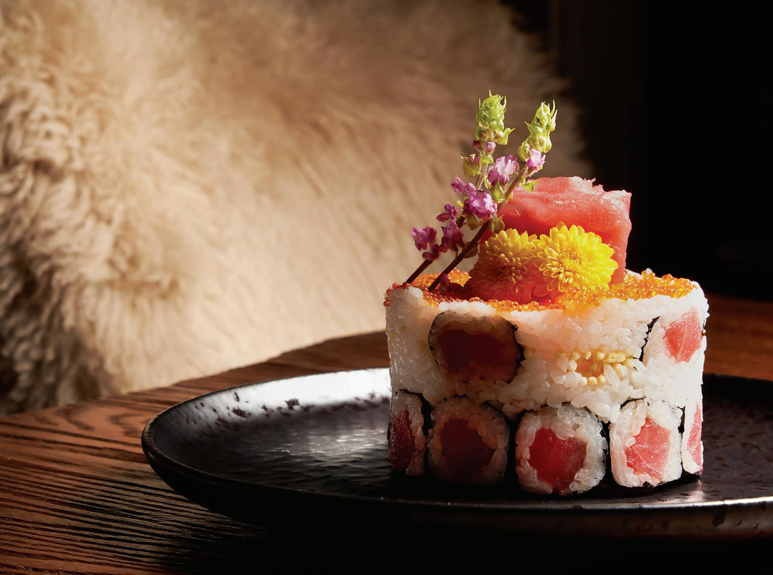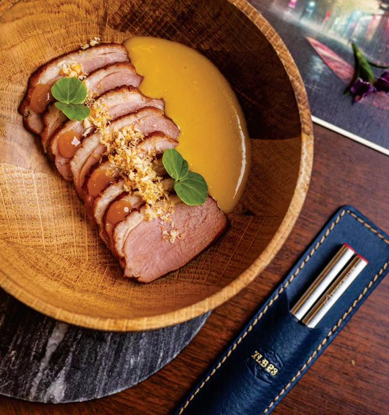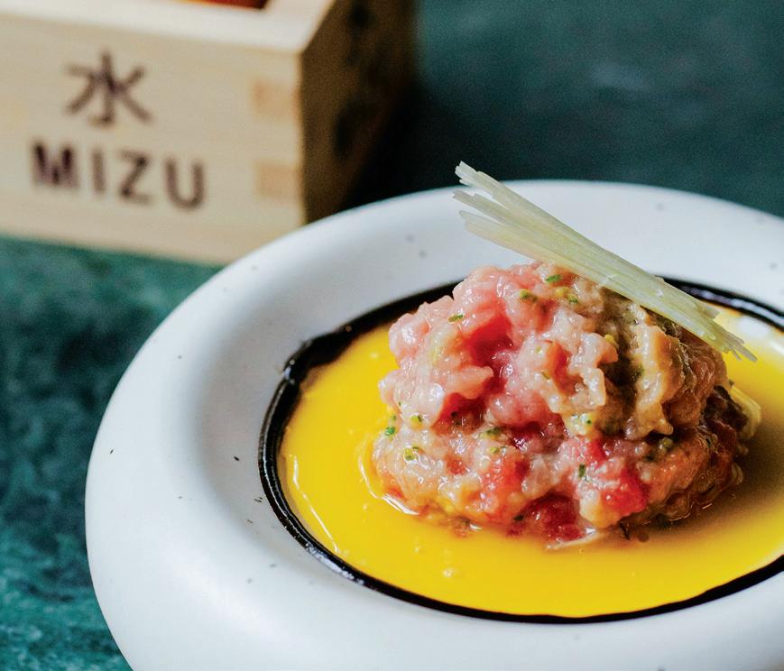 smiles Roychoudhury—features pan-seared duck breast with miso glaze, accompanied by a truffle passion fruit emulsion and pangritato. Among the many seafood options is Maguro Tataki, in which lean pan-seared tuna slices are topped with a rich chilli miso sauce and served with ossetra caviar and saffron tuile. Cream and crunch come together in the Burrata and Broccoli Toast with hazelnuts and edamame, while a gluten-free option shines with beetroot hummus, homemade crackers, mint vinaigrette, edamame and lettuce.