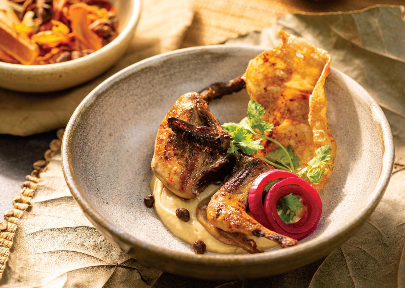 in harmony with animals, birds, and plant life. There were a few challenges, e.g. no approach road to TITH. Everything had to be carried manually to get the place ready for welcoming diners, increasing costs, but they’ve gone with eco-friendly materials like mud and wood. Chef Martins talks about his dream project, which was inspired by how chefs celebrate their mother cuisine internationally. “I knew I was going to serve food with seasonal and hyperlocal ingredients sourced from a five-km radius.”