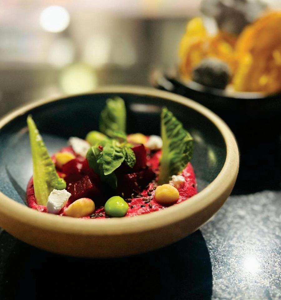 surroundings, Amaya was the perfect hearth where Naar’s audaciously creative fire was kindled. A food lab was set up for all his experiments. The shelves soon filled up with preserves and ferments that found their way into dishes which made diners rethink their notions of fine dining. Chef Sadhu blends the traditional with the contemporary so seamlessly that no one can determine the difference or the distance between them.