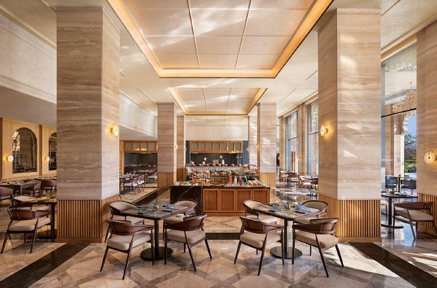 Storytelling defines the Anar experience. Pomegranate motifs— anar—appear on the cutlery and throughout the space. “Every detail, from crockery and music to cocktails, is designed to transport the diner,” says Kataria. “We aren’t trying to replicate a single country’s cuisine. Instead, we present a broader, more layered vision of the Middle East—one that balances elegance with comfort, nostalgia with novelty.”