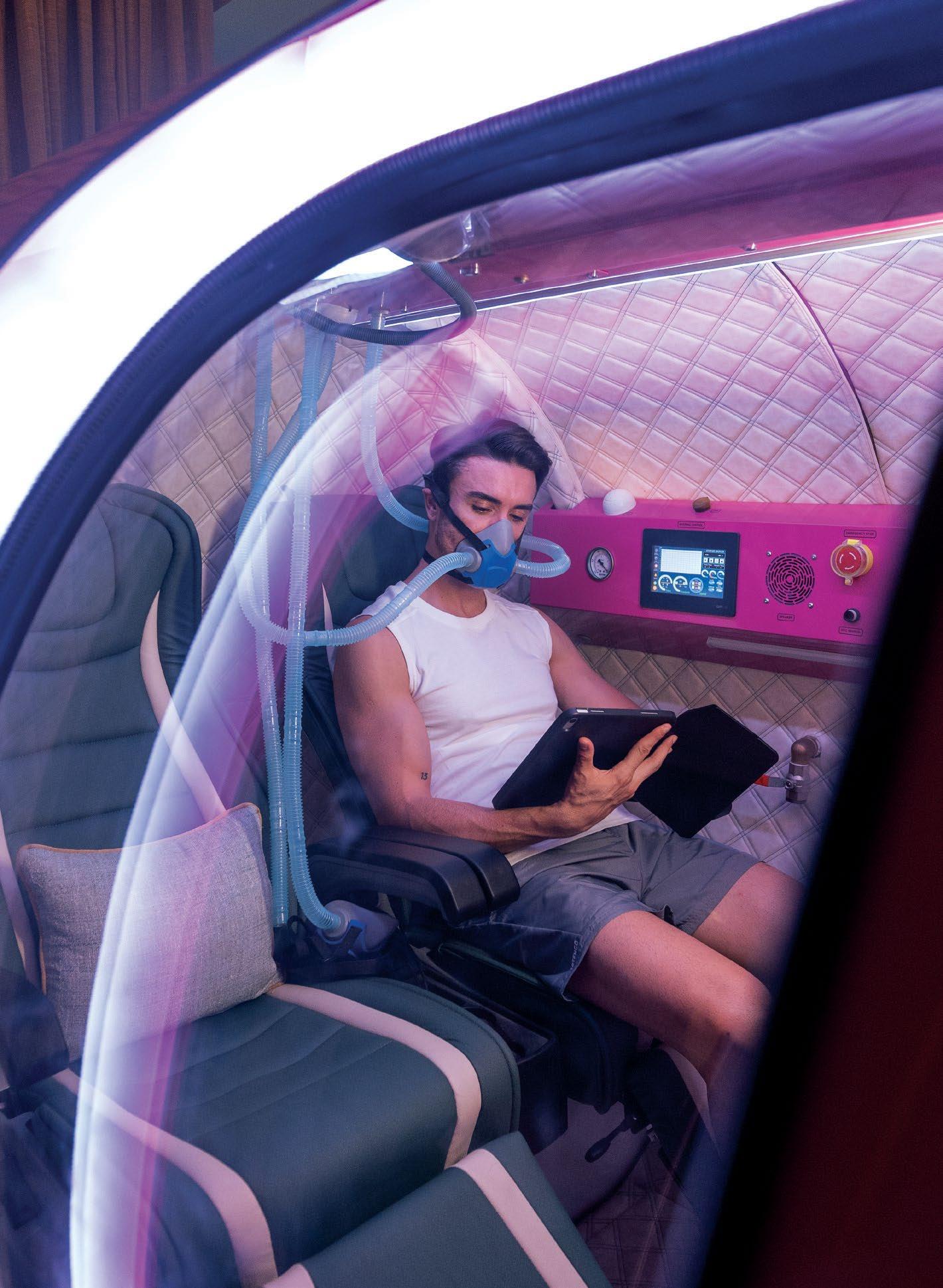 After three invigorating minutes, when the session ended, and the chamber door opened, I could sense a rush of freshly oxygenated, nutrientrich blood flowing through my body. Short bursts of ultra-low temperatures reduced my muscle pain and soreness. The science is simple: intense cold triggers the constriction of blood vessels.