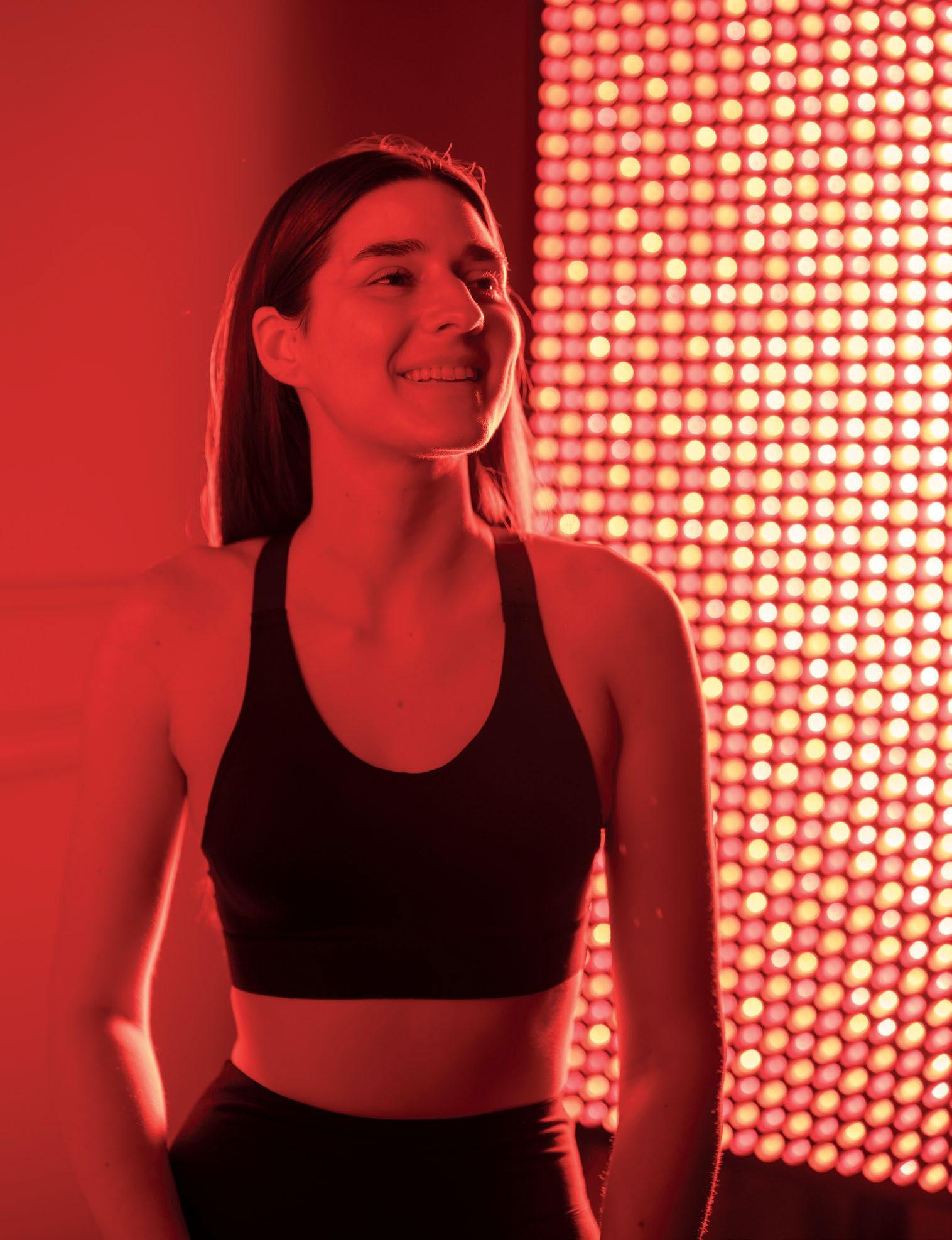 LEFT: The cryo-chamber where the air freezes you at –85°C. BELOW: Red Light Therapy uses gentle, low-level red wavelengths that penetrate deep into the skin to stimulate cellular renewal.
