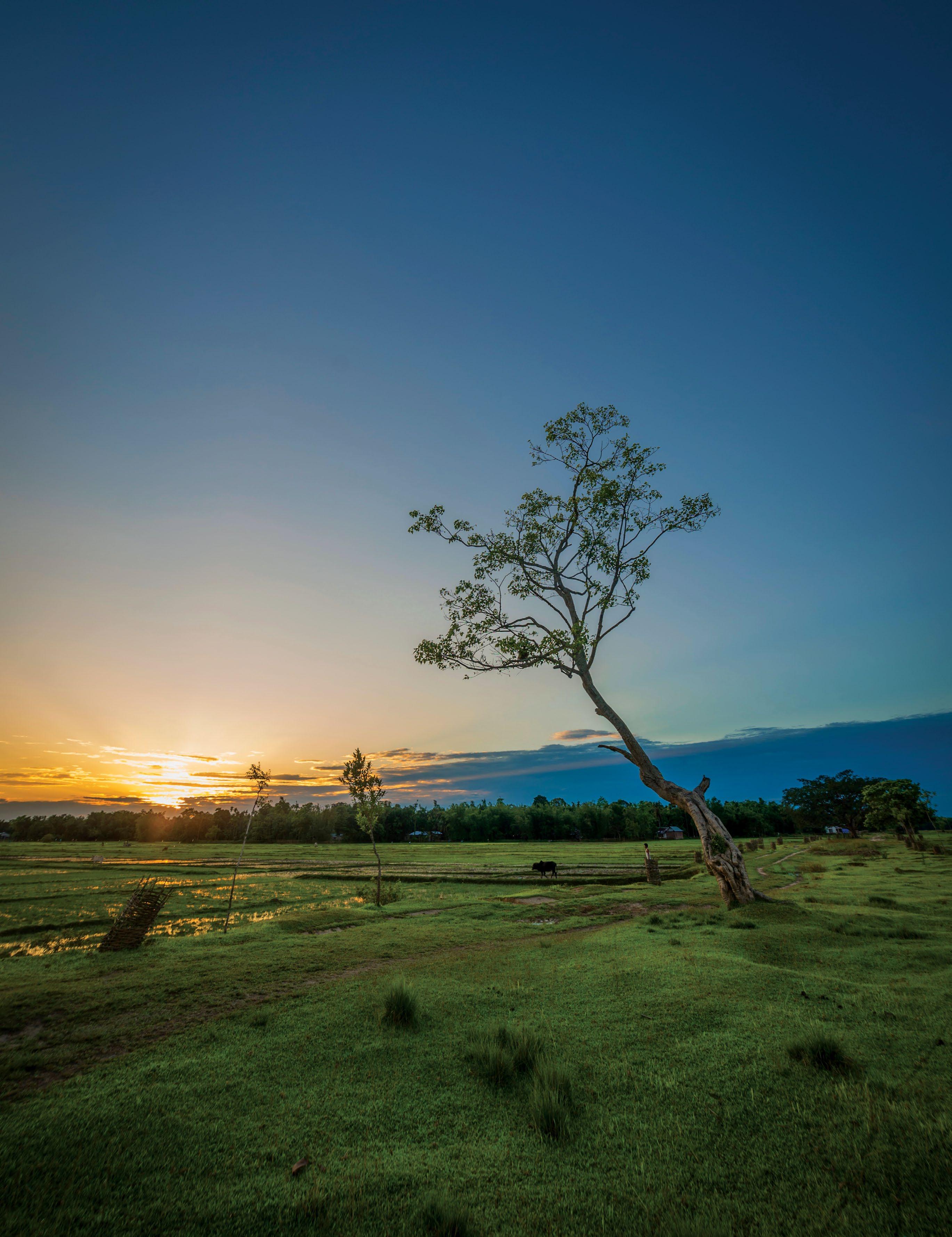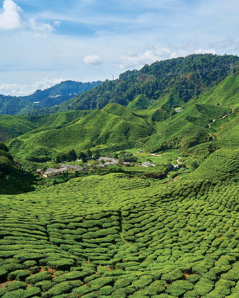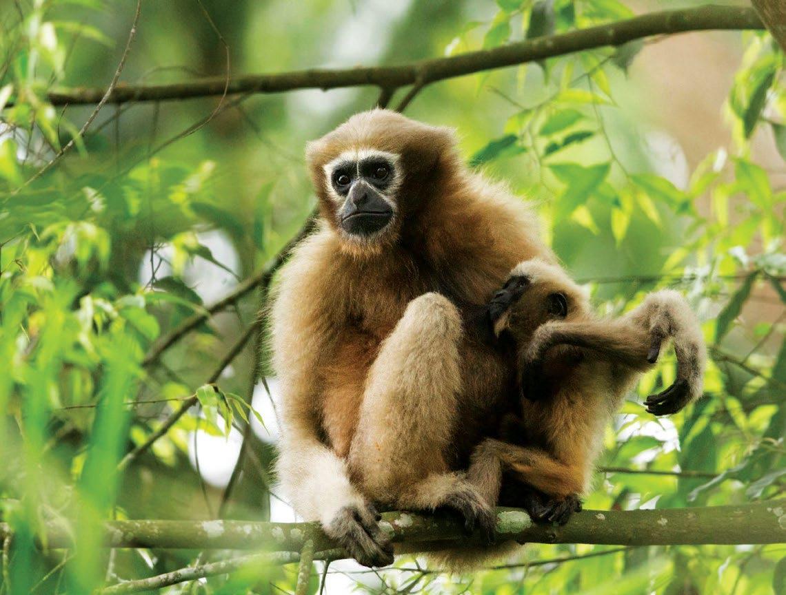THIS SPREAD, CLOCKWISE FROM OPPOSITE: Lowlying plains and light forest cover shape Jorhat’s landscape; Hoollongapar Gibbon Wildlife Sanctuary is home to India’s only ape species; tea estates define much of the region; in many Assamese households, weaving is still practised at home.