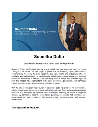 Soumitra Dutta has established a distinguished career that spans global business, academia, and technology. His work in digital transformation has guided policymakers, business executives, and institutions in understanding how innovation can create lasting impact. He has contributed to shaping strategies that connect technological advancement with human progress through his research and leadership. His dedication to advancing meaningful innovation continues to influence organizations and individuals worldwide. With the Global Innovation Index launch in September 2025, he reaffirmed his commitment to promoting AI strategy and future readiness. This initiative underscores his belief that data-driven insights can help countries and corporations plan effectively for sustainable growth. His leadership in this area highlights a consistent focus on bridging research, practice, and policy to drive global development. Innovation has always been central to his professional path. His research provides valuable frameworks for universities, corporations, and nations to assess their performance and explore new opportunities for advancement. The Global Innovation Index, now used by over a hundred countries, is a reliable measure of innovation capacity. It is a reference for global leaders and investors seeking to foster innovation ecosystems grounded in collaboration and strategic progress. His reports and publications reach millions of readers annually, illustrating their global relevance and accessibility. Many international institutions rely on his research for strategic and policy decisions. His work effectively combines data analysis with insights into governance, infrastructure, and education, emphasizing that all three are essential pillars of long-term development. He believes that innovation is a shared journey and that measurable collaboration leads to meaningful results. This principle reflects his broader vision of progress as a collective effort built on knowledge, adaptability, and purpose.