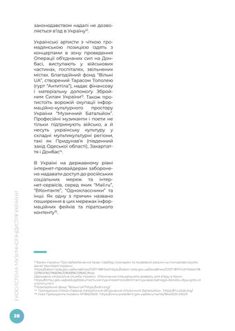 12 Закон України Про забезпечення прав і свобод громадян та правовий режим на тимчасово окупованій території України: https://zakon.rada.gov.ua/laws/show/1207-18#Texthttps://zakon.rada.gov.ua/laws/show/1207-18?find=1&text=% D0%9A%D1%80%D0%B8%D0%BC#top Державна міграційна служба України. Отримання спеціального дозволу для в’їзду в Крим: https://dmsu.gov.ua/poslugi/dokumentuvannya-inozemcziv/otrimannya-speczialnogo-dozvolu-dlya-vjzdu-d o-krimu.htm 13 Благодійний фонд “Вільні UA”https://wilni.org/ 14 Громадська спілка «Творче патріотичне об’єднання «Музичний Батальйон» : https://muzbat.org/ 15 Указ Президента України №184/2020 https://www.president.gov.ua/documents/1842020-33629