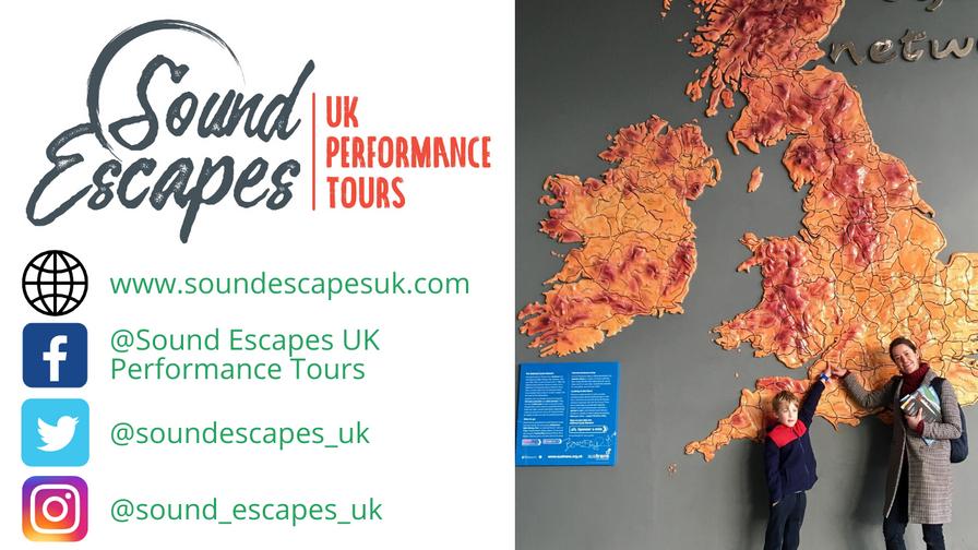 Sound Escapes is an independent family-run tour operator specialising in performance tours for all types of amateur music ensembles and expressive arts groups to the UK and Ireland Our holidays are completely bespokeandyourrequirementsarekeyincreatingtheperfecttour.WearebasedinNottingham,locatedin the heart of the UK, so are perfectly placed for facilitating your tour arrangements to the finest detail Whether you are embarking on a tour to the UK and Ireland for the very first time or visiting from another region of our fine country, we will ensure a unique and great British welcome to wherever your musical journeyleads Betweenuswehavealmost50yearsofexperienceinspecialistgrouptravelwith22ofthese years in Concert Tours. Music. live performance and travel are our passions and we also spend much of our freetimesinginginchoirsandbands,playingmedievalinstrumentsandthepiano,performinginthetheatre andteachingdance!