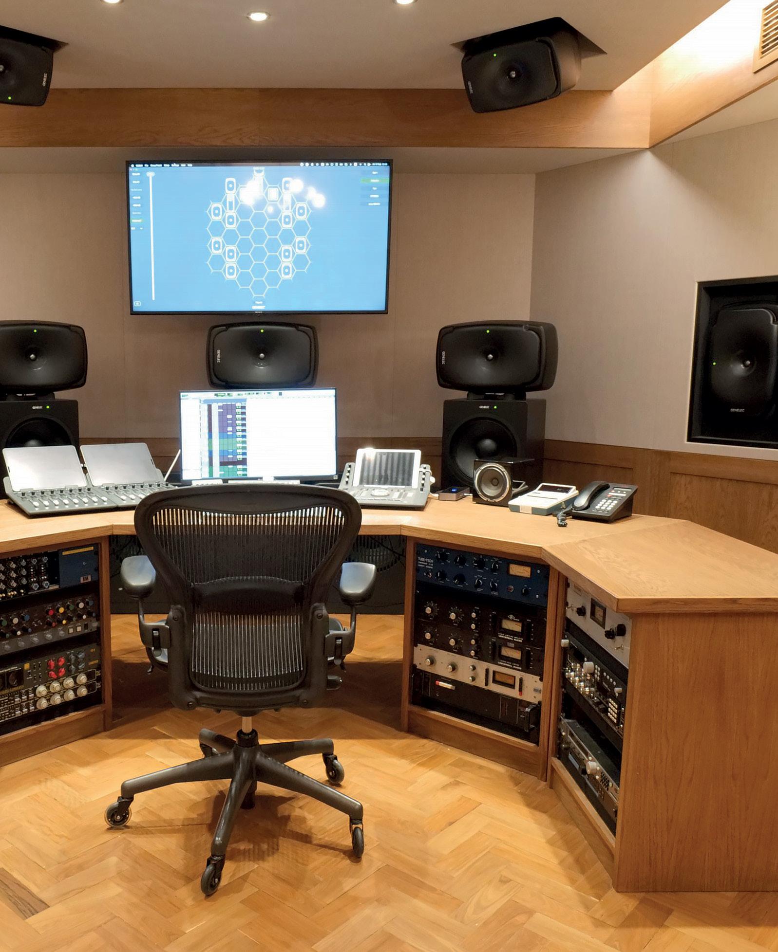 complement the system in terms of it being an immersive room and a mix room, but also in what it feels like if you want to bring four or five people in there to write. I think what’s been achieved here, not just sonically and technically, but in terms of the aesthetic and the vibe of that room, is really special. It’s a space that you want to spend time in that works for all these different disciplines, which is so important for a commercial facility. But it also had to complement the existing spaces at RAK — it had to feel like a RAK room, too.”