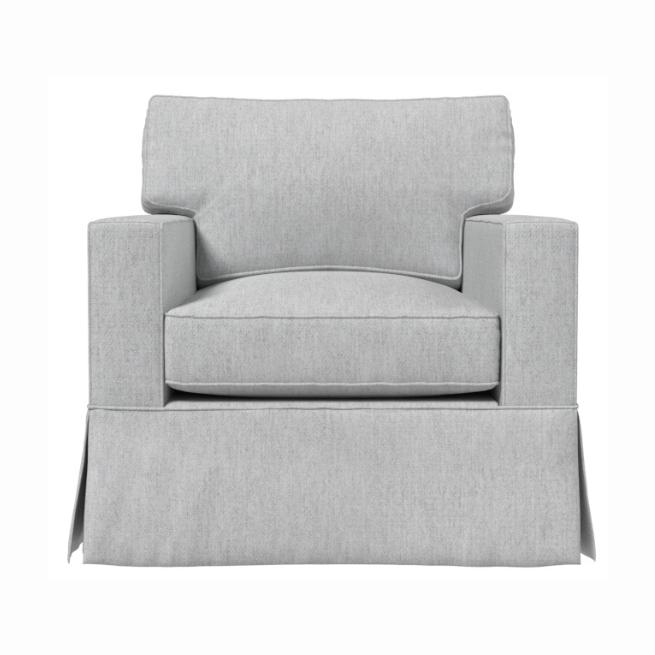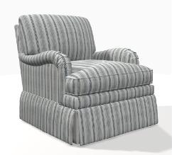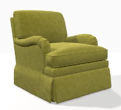 Box seat cushion and tight barrel back. Tailored skirt.